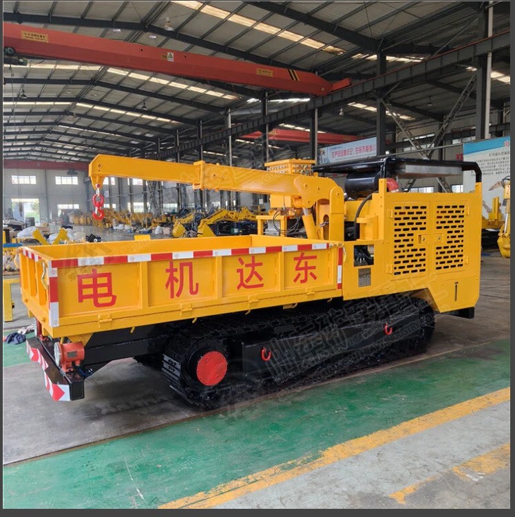 防爆柴油机履带运输车(以下简称履带运输车)是一种以防爆发动机为动力、液压传动的无轨式履带运输车,可在爆炸性气体环境中使用。该运输车采用电起动,电保护,安全系数高,整机出现异常时自动保护装置会自动发出声光报警,并在一分钟内自动切断油路迫使整车停机。适用于各类巷道运输物料、搬运、牵引等工作,解决“最后一公里运输”和小断面巷道其他运输设备无法进入的问题。主要功能特点□整车采用液压驱动履带行走方式,采用双向驾驶,具有高低速切换、行走马达自锁等功能,有效解决巷道内空间不足,转弯不便及溜车的情况。□整车宽度小,通过空间小,适用于窄巷道运输。□整车配有随车起吊臂,起吊重量1500-2000 kg,装卸重物方便安全。□整车配置车厢升降功能,便于散装物料的装卸。□一机多用,既可搬运、运输物料(风水管路、支护材料、开关电器、重型物质),也可作为牵引车使用。