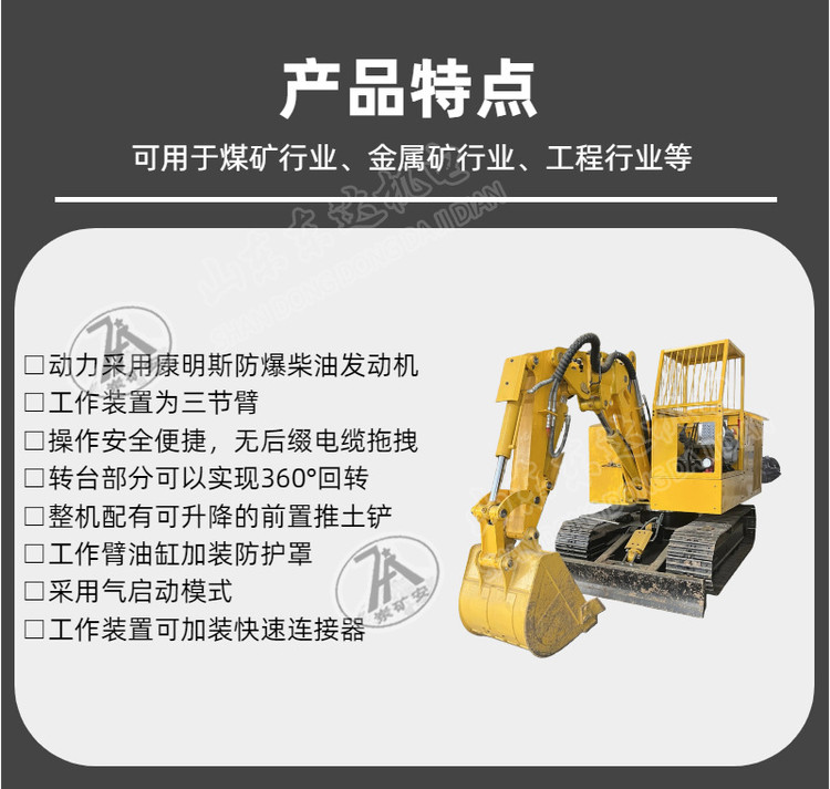 MWC系列煤矿用液压挖掘机是一种以康明斯防爆柴油机为动力,适用于煤矿竖井、斜井及平巷掘进中的装岩、清底以及冻土层的挖掘作业